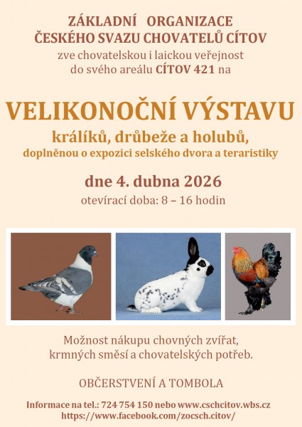 Za prvé se mění z dvoudenních na jednodenní (v sobotu) a za druhé je možné svá zvířata hlásit cestou online přihlášky na https://vystavy.onlinevystava.eu/citov